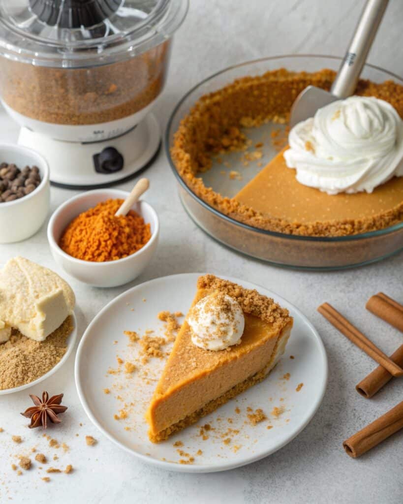 With these ingredients on hand, you’re all set to create something that will impress your family and friends. The first step involves preparing the crust, and it’s quite simple. Begin by adding your graham crackers to the bowl of a food processor. Add in the granulated sugar and ground cinnamon, then pulse until everything is reduced to fine crumbs. This is the key to a flavorful crust that complements the filling perfectly!